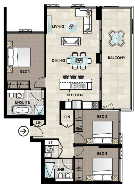 - 无与伦比的绝美景色,可欣赏由悉尼奥林匹克公园直至悉尼CBD的天际线美景,超过80%的公寓拥有双面朝向,全景落地玻璃窗将确保您的公寓采光充足