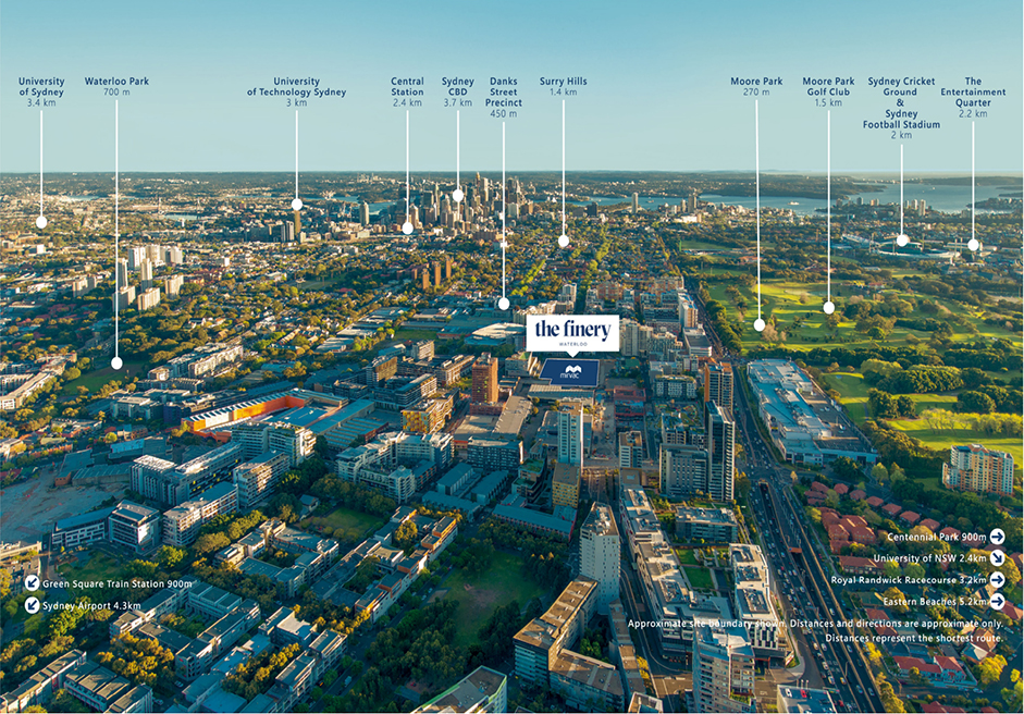 项目所在的Waterloo区位于悉尼中央商务区以南 3 公里处,地理位置优越,紧邻重点高校、休憩用地和便利设施。