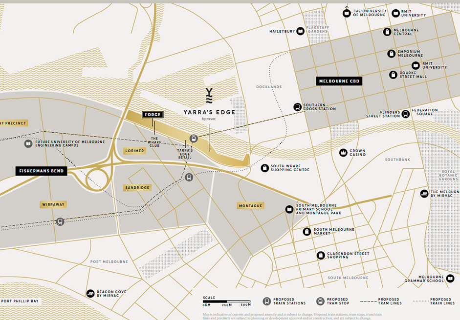 绝佳的地理位置和优美的社区环境为Forge公寓项目锦上添花。居民们沿河畔可轻松到达South Wharf、Southbank与墨尔本中央商务区,而紧靠海边的Port Melbourne与South Melbourne区也近在眼前。
