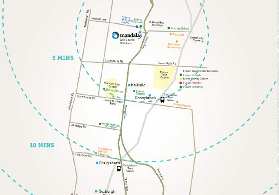 项目距离Craigieburn火车站10分钟车程,墨尔本市中心50分钟车程,位于Hume Freeway(北区主要高速)附近。